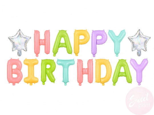 Balony foliowe tworzące napis HAPPY BIRTHDAY