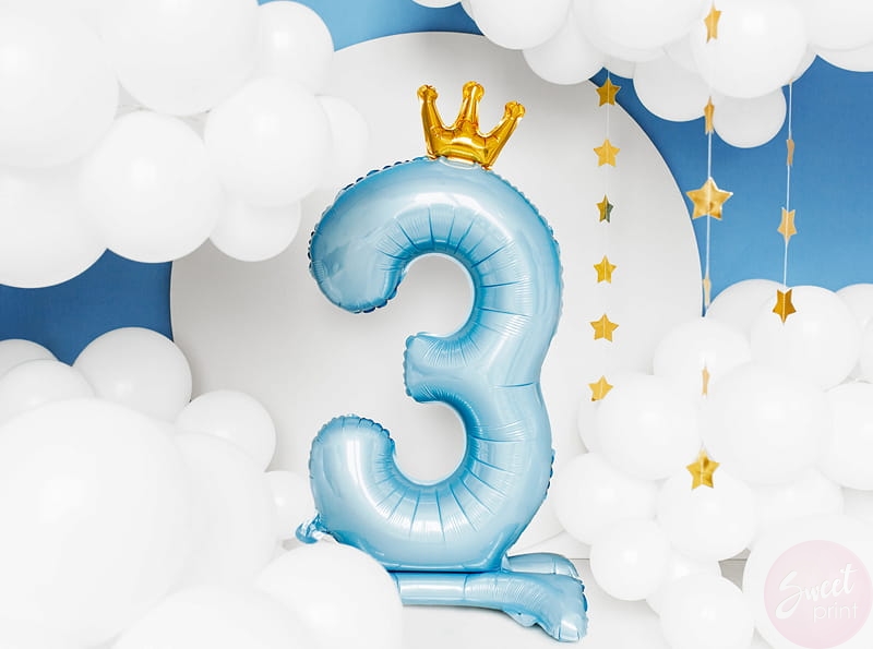 balony urodzinowe, balony cyfry, balon cyfra, balon numer 3, balon stojący, balony stojące, duże balony, duży balon, balon gigant, niebieskie, błękitny, błękitne, niebieskie