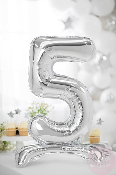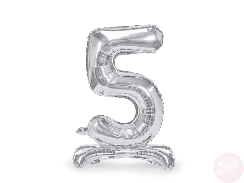 Balon stojący, foliowy Cyfra "5" srebrny, 70 cm