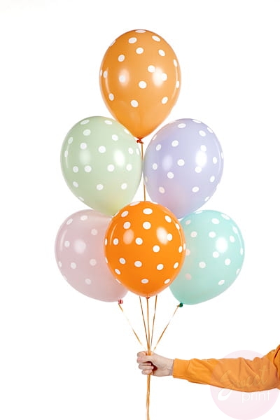 Udekoruj swoją imprezę tymi kolorowymi balonami z nadrukiem w kropki.