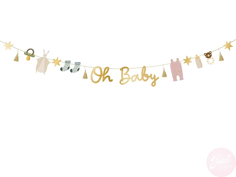 Zorganizuj niesamowite baby shower! Baner z napisem "Oh Baby" będzie idealną dekoracją na przyjęcie organizowane przez przyszłych rodziców!