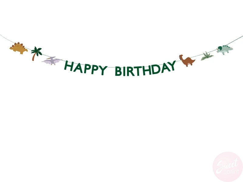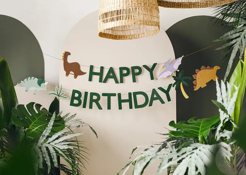 Zorganizuj niesamowite urodziny z dinozaurami! Baner z napisem HAPPY BIRTHDAY będzie idealną dekoracją na przyjęcie z motywami dinozaurów!