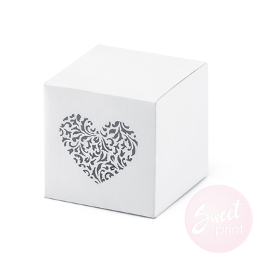 Białe, perłowe pudełeczka z ozdobnym sercem