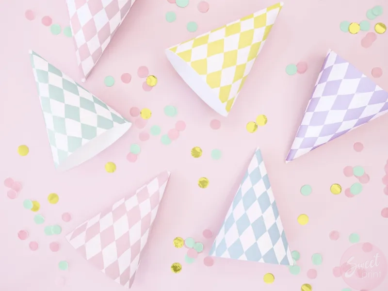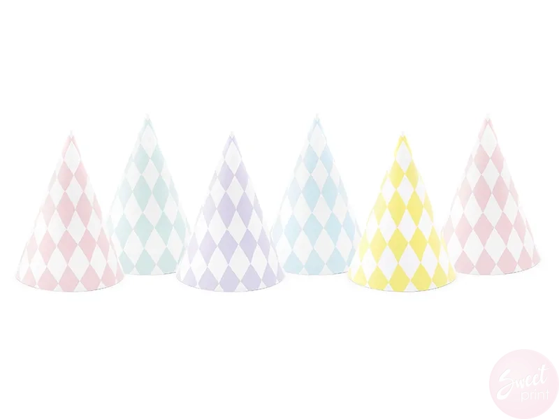 Papierowe czapeczki w romby w 6 pastelowych kolorach są idealnym dodatkiem na każdą imprezę!