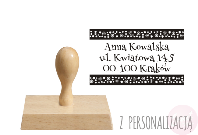 Drewniany stempel adresowy - pieczątka GWIAZDKA