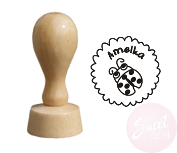 Drewniany stempel imienny - pieczątka BIEDRONKA