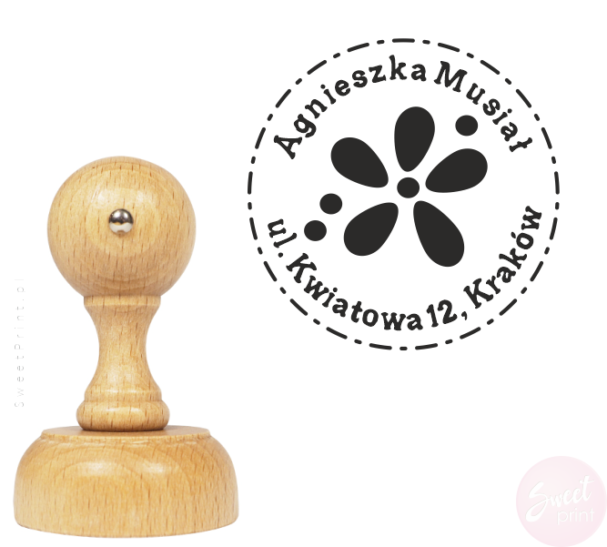 Drewniany stempel personalizowany - pieczątka KWIATEK