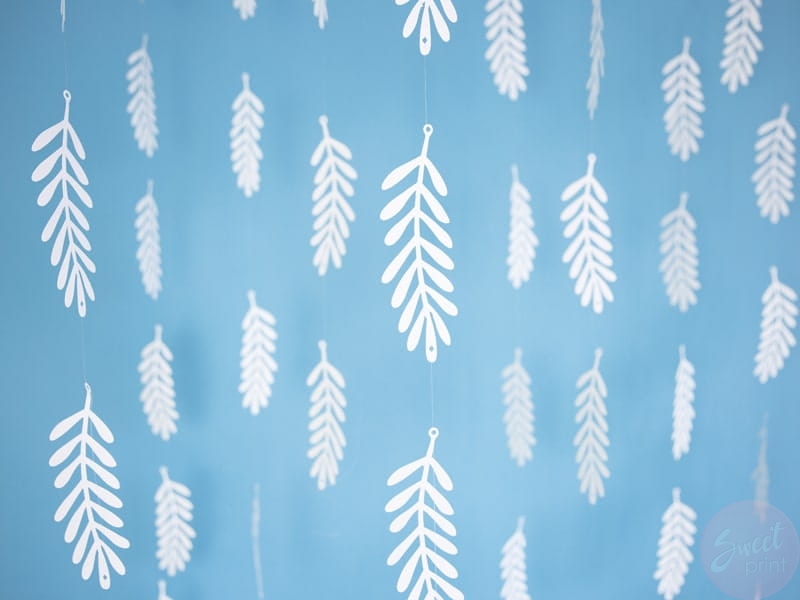 Świętuj z radością zawieszając tę białą girlandę na swoim przyjęciu! Dekoracja z białych, papierowych gałązek doda uroku Twoim uroczystościom, bez względu na to, czy jest to przyjęcie urodzinowe, baby shower, chrzest czy inne specjalne święto.