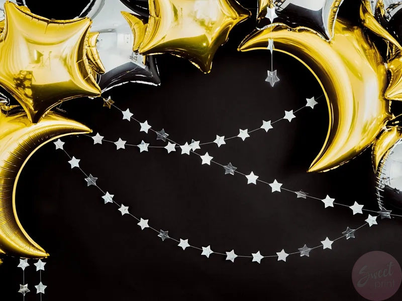 Świętuj z radością zawieszając tę kolorową girlandę na swoim przyjęciu! Dekoracja ze srebrnymi gwiazdkami doda uroku Twoim uroczystościom, bez względu na to, czy jest to przyjęcie urodzinowe, baby shower, chrzest czy inne specjalne święto.