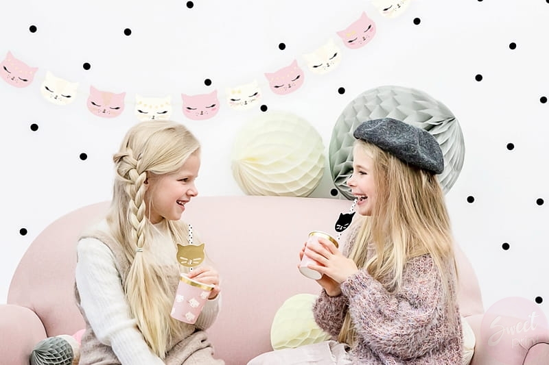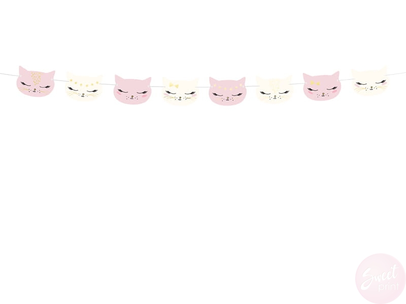 Świętuj z radością zawieszając tę kolorową girlandę na swoim przyjęciu! Dekoracja z kotkami doda uroku Twoim uroczystościom, bez względu na to, czy jest to przyjęcie urodzinowe, baby shower, chrzest czy inne specjalne święto.