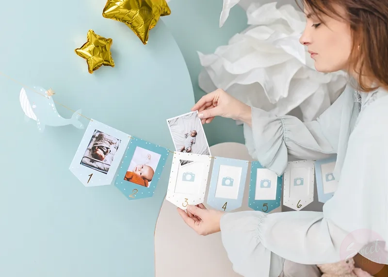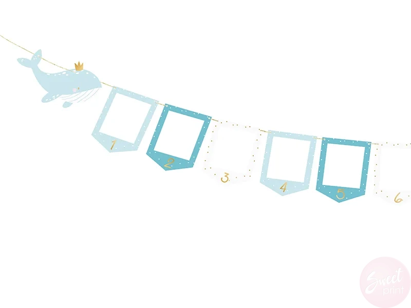 Świętuj z radością zawieszając tę kolorową girlandę na zdjęcia na swoim przyjęciu! Dekoracja w błękitnych kolorach doda uroku Twoim uroczystościom, bez względu na to, czy jest to przyjęcie urodzinowe, baby shower, chrzest czy inne specjalne święto.