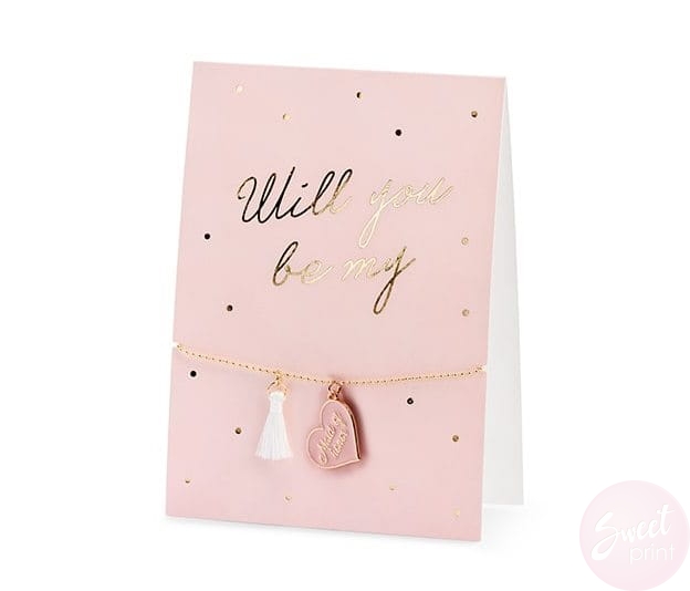 Kartka z bransoletką i napisem "Will you be my Maid of honor"