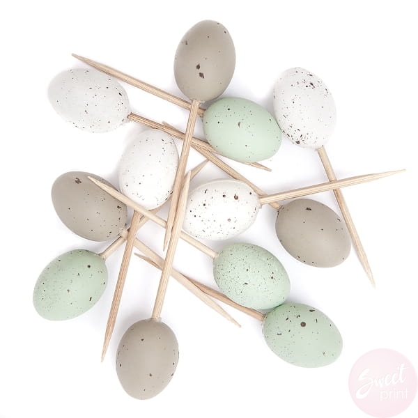 Dzięki tym mini jajeczkom na piku nawet proste muffinki staną się oryginalną ozdobą wielkanocnego stołu. Jajeczek możesz ich także użyć do tworzenia stroików oraz inny wiosennych projektów.