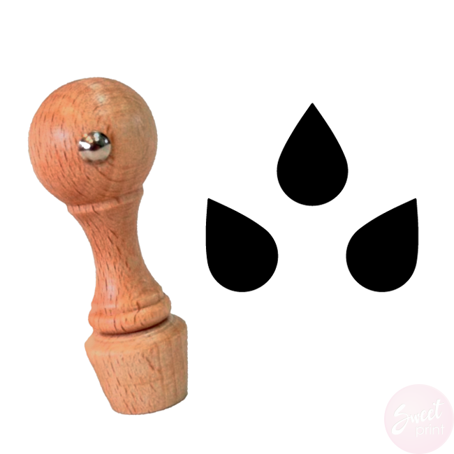 Drewniany stempel ze znaczkiem w kształcie kropelki. Zaskocz swoich klientów niecodziennym wzorem!