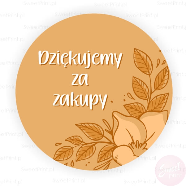 Żółte naklejki z roślinnym motywem i napisem "Dziękujemy za zakupy"