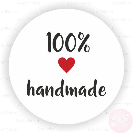 Komplet naklejek serduszkiem oraz napisem "100% handmade"