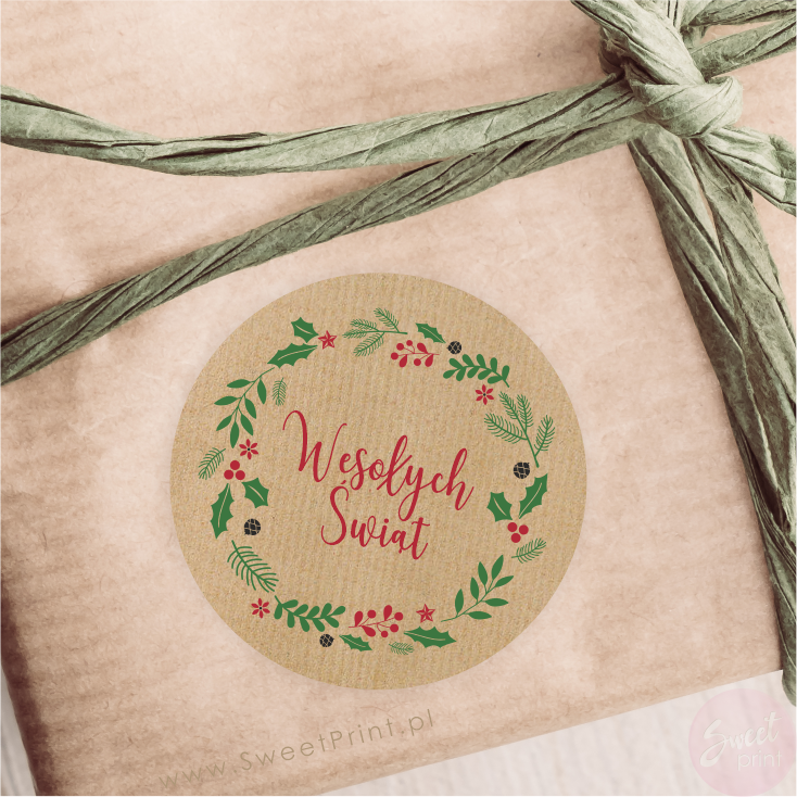 Naklejki ŚWIĄTECZNY WIANEK / papier kraft