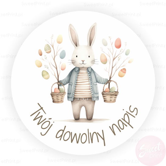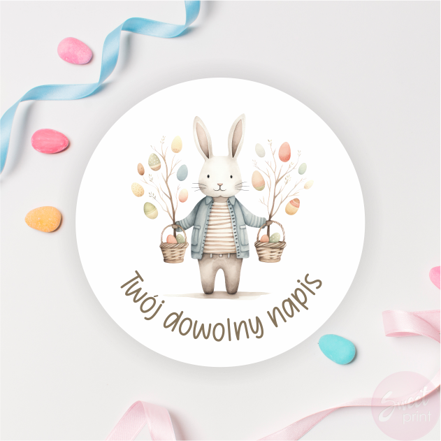 Pastelowe, delikatne naklejki z zajączkiem będą idealne do tworzenia ręcznie robionych dekoracji, kartek i zaproszeń lub do oznaczania prezentów lub paczek. Wydrukujemy na nich Twoje imię, slogan czy inny dowolny krótki tekst. Możesz też wybrać opcję bez personalizacji.