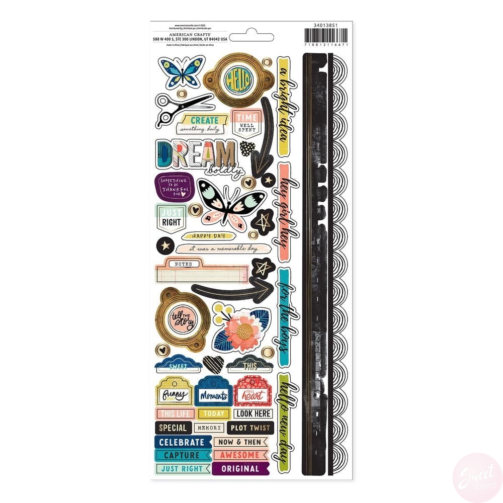 Dodaj do swoich projektów kolorowe akcenty. Ten zestaw zawiera 120 naklejek z różnymi motywami i kształtami, niektóre z elementami złotej folii. Idealnie nadają się do tworzenia albumów, do scrapbookingu, kartek i innych projektów!