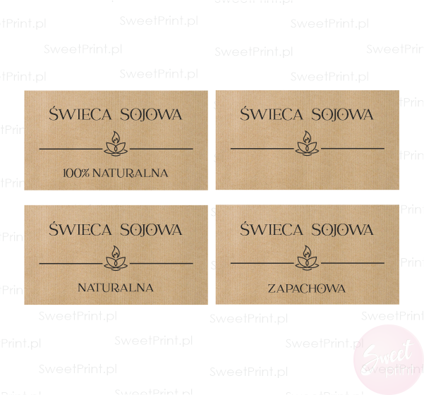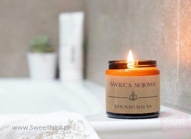 Naklejki z papieru kraft na świece - z napisem ŚWIECA SOJOWA
