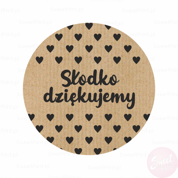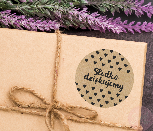 Naklejki kraft z serduszkami - SŁODKO DZIĘKUJEMY