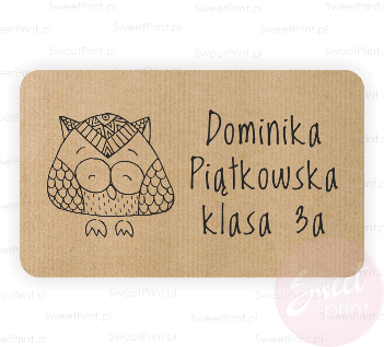 Obok obrazka na naklejce wydrukujemy imię i nazwisko, klasę lub inny dowolny tekst.