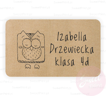 Obok obrazka na naklejce wydrukujemy imię i nazwisko, klasę lub inny dowolny tekst.