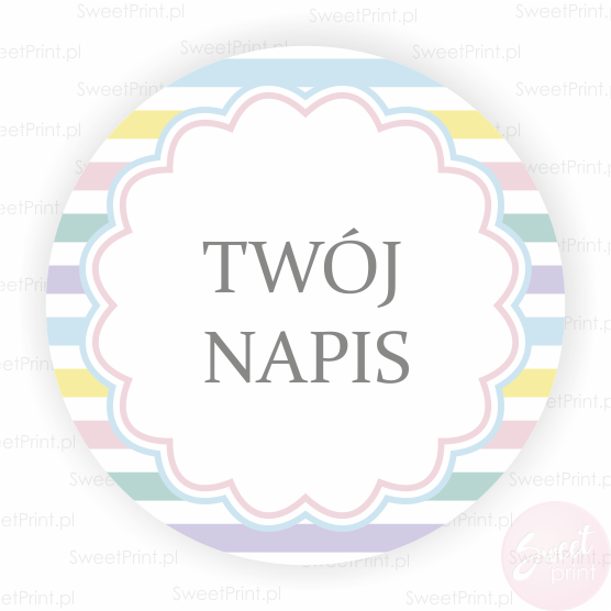 Na tych okrągłych naklejkach wydrukujemy Twoje imię, slogan czy inny dowolny krótki tekst.