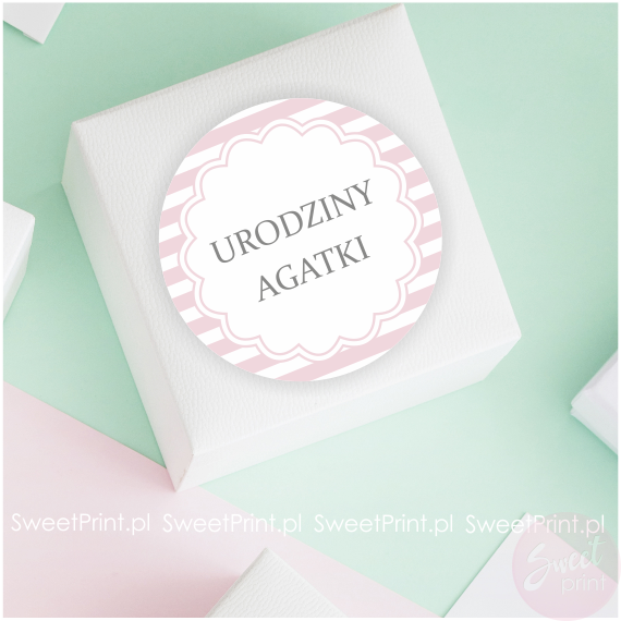 Personalizowane naklejki z tłem w różowe paski