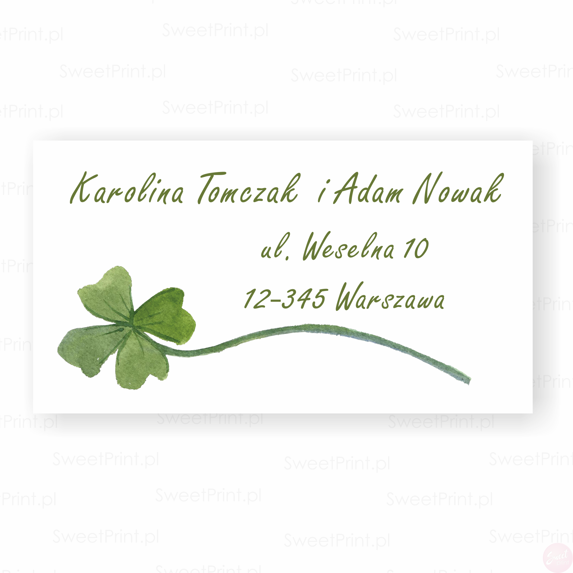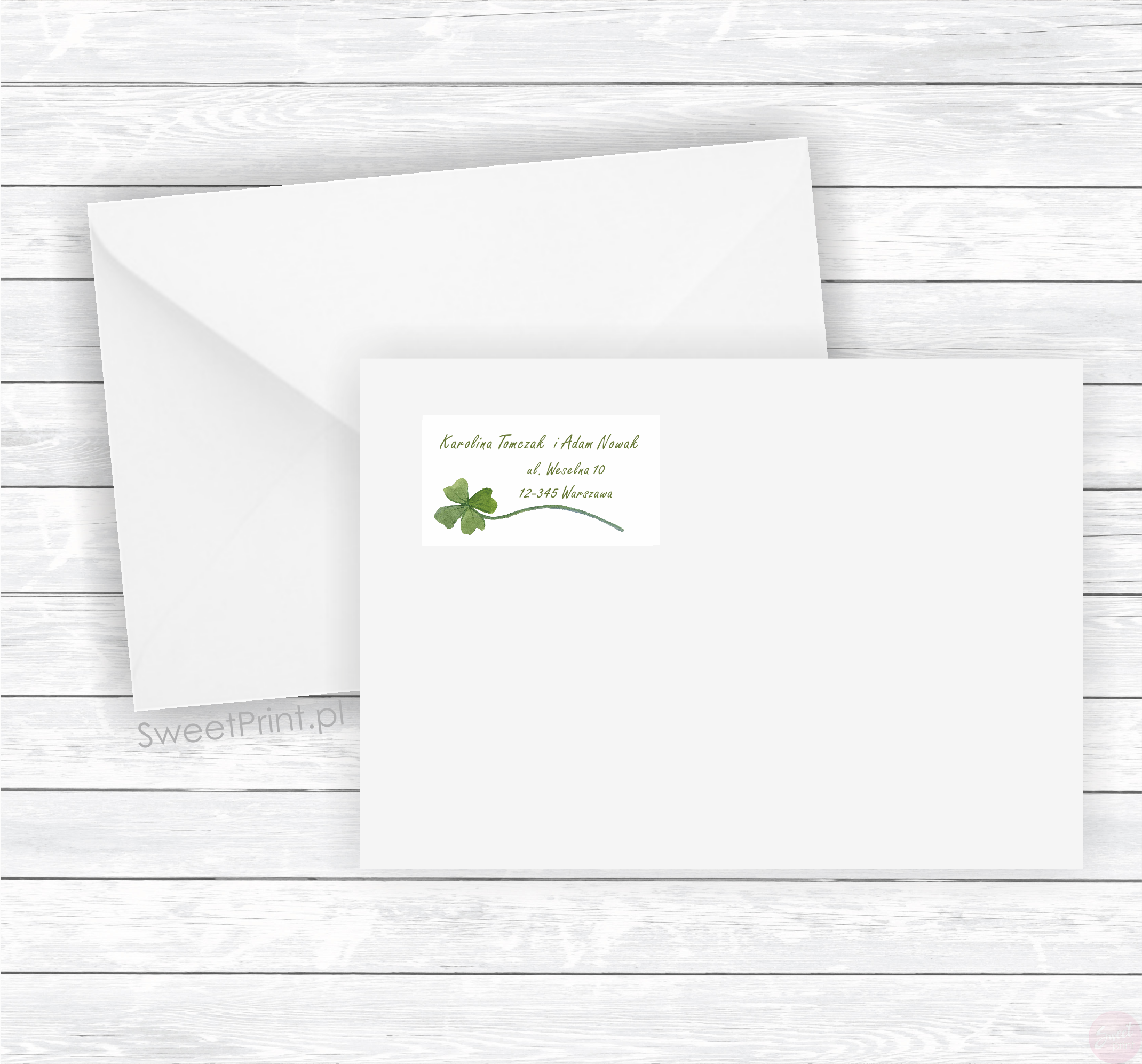 Na tych naklejkach z koniczynką wydrukujemy adres, imiona, datę ślubu, podziękowanie lub dowolny krótki tekst.