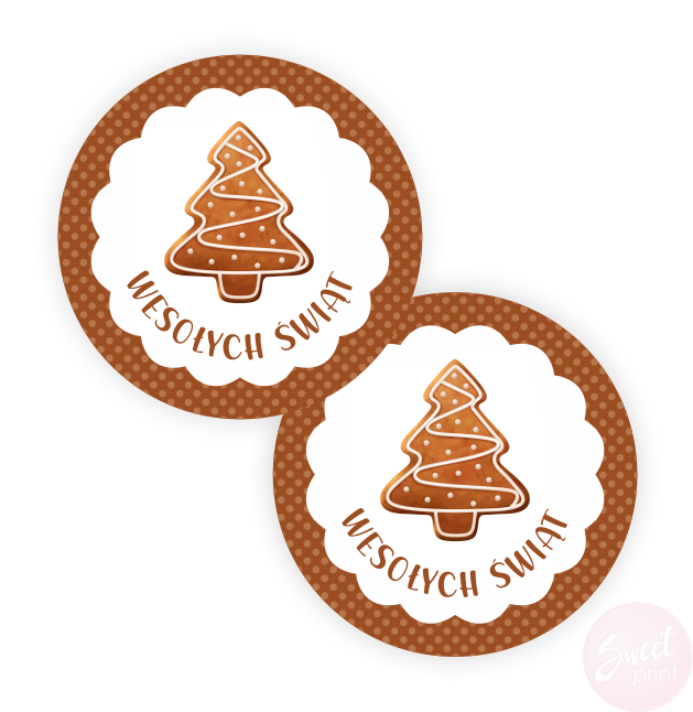 Naklejki z pierniczkiem i napisem Wesołych Świąt