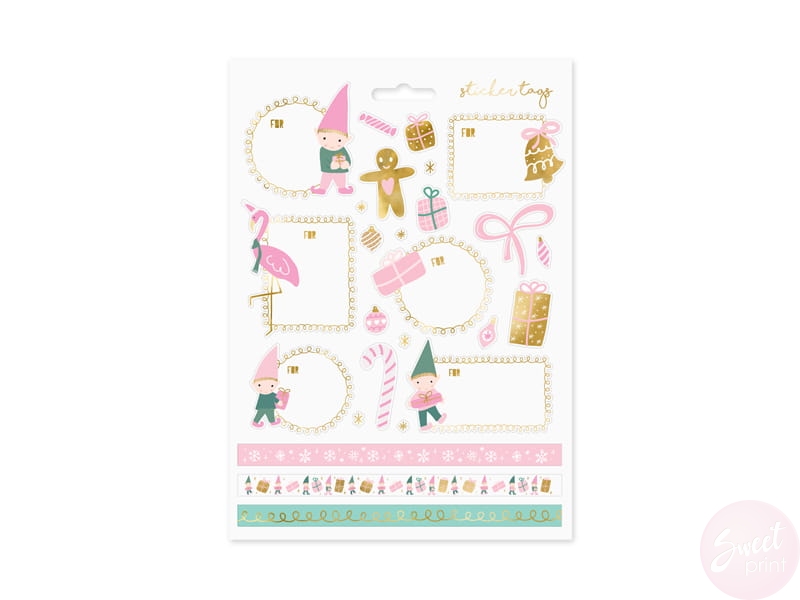 Zestaw zawiera naklejki na prezenty oraz inne, świąteczne motywy, które możesz wykorzystać do wykonania na przykład bożonarodzeniowych kartek.