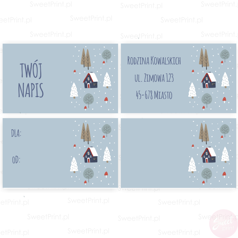 Wydrukujemy na nich Twój adres, nazwę Twojej firmy, lub inny tekst.