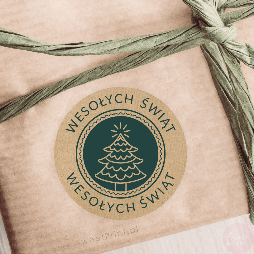 Naklejki z papieru kraft z napisem Wesołych Świąt
