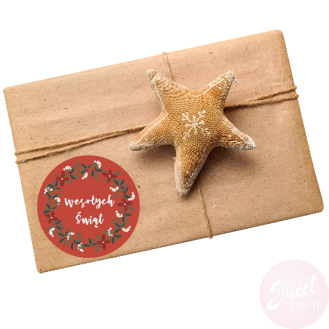 Personalizowane naklejki z bożonarodzeniowym wieńcem