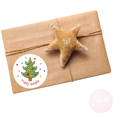 Te okrągłe naklejki świetnie nadają się na koperty świąteczne, torebki i pudełka na prezenty a także na świąteczne przesyłki Twojej firmy. Wydrukujemy na nich Twoje imię, nazwę Twojej firmy, krótkie życzenia lub inny tekst.