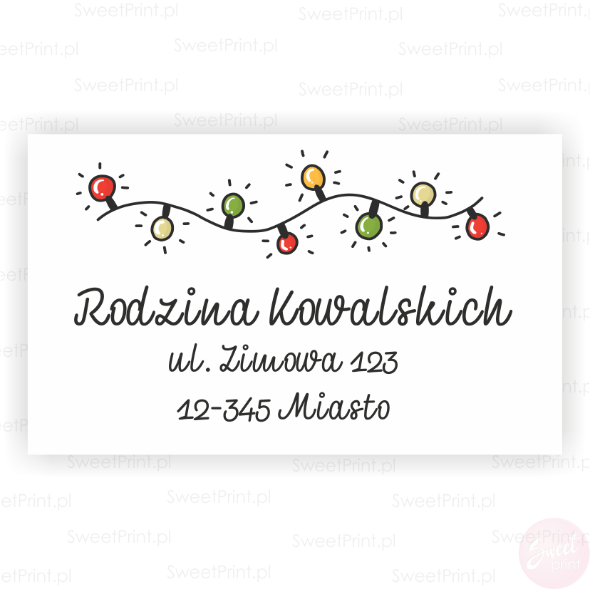 Naklejki świąteczne z kolorowymi lampkami i Twoim napisem.