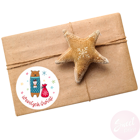 Naklejki świąteczne z misiem.