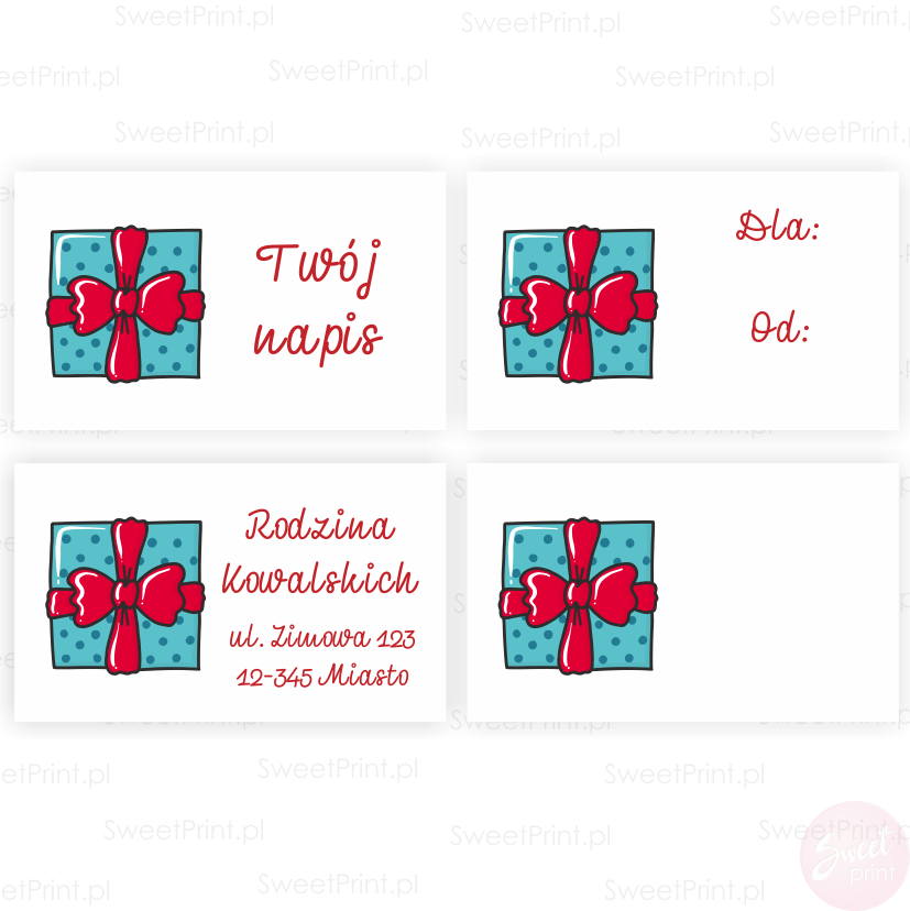 Wydrukujemy na nich Twoje imię, nazwę Twojej firmy, krótkie życzenia lub inny tekst.