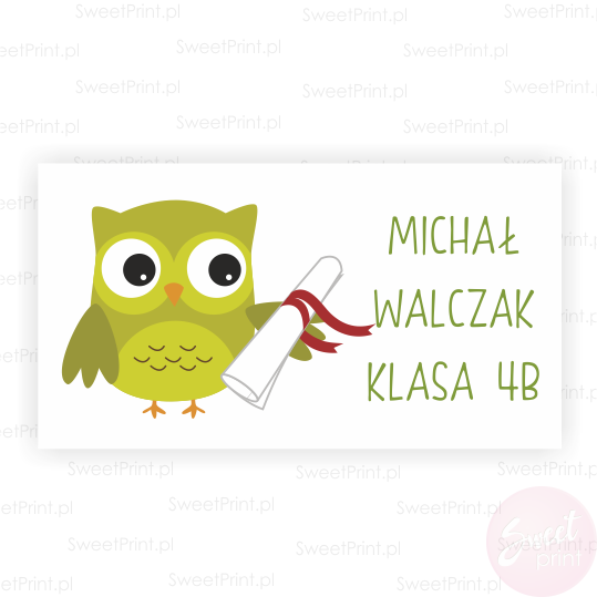 Obok obrazka na naklejce wydrukujemy imię i nazwisko, klasę lub inny dowolny tekst.