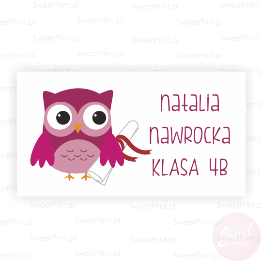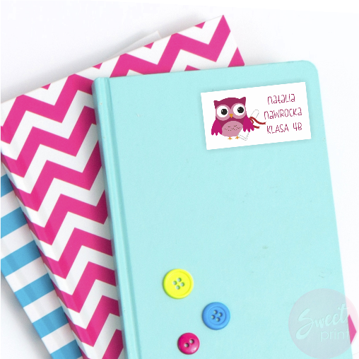 Obok obrazka na naklejce wydrukujemy imię i nazwisko, klasę lub inny dowolny tekst.