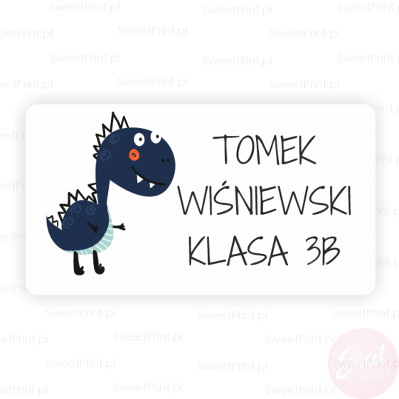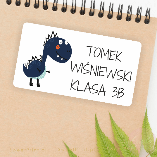 Imienne naklejki z dinozaurem - na książki i zeszyty