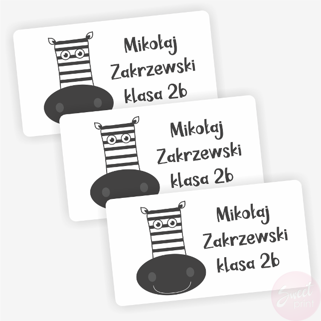 Naklejki szkolne imienne / na zeszyty ZEBRA