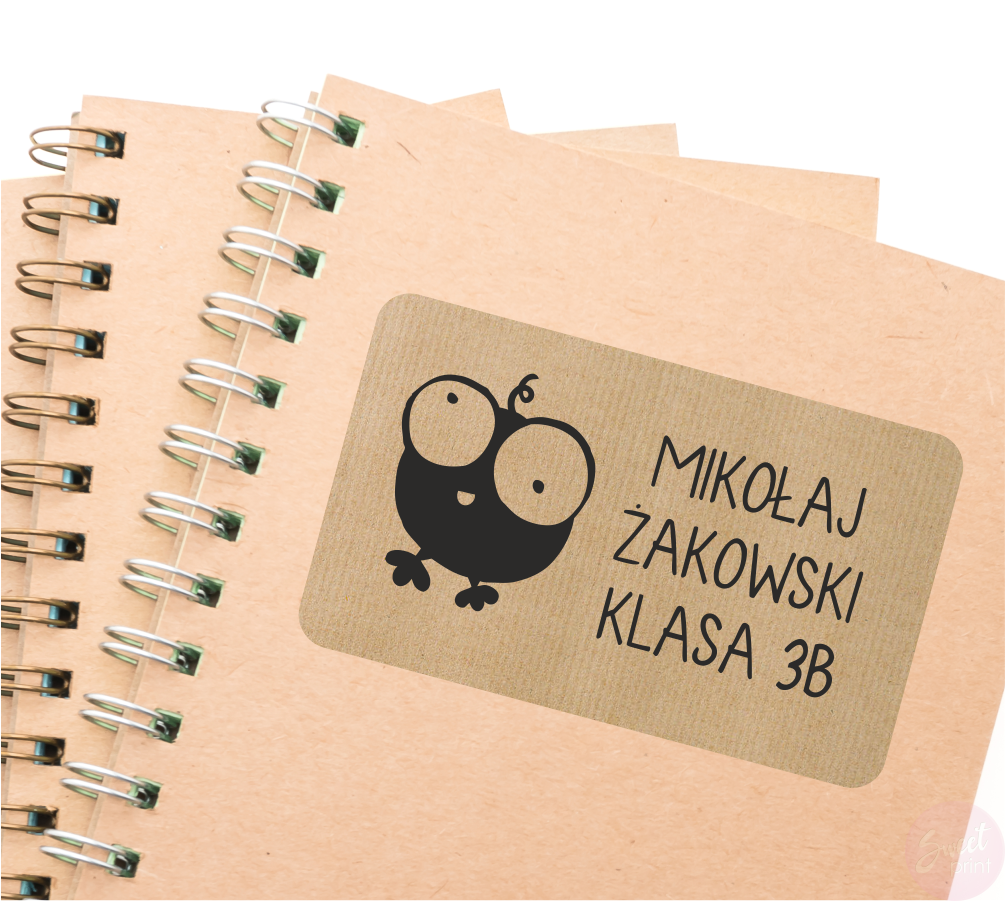 Obok obrazka na naklejce wydrukujemy imię i nazwisko, klasę lub inny dowolny tekst.
