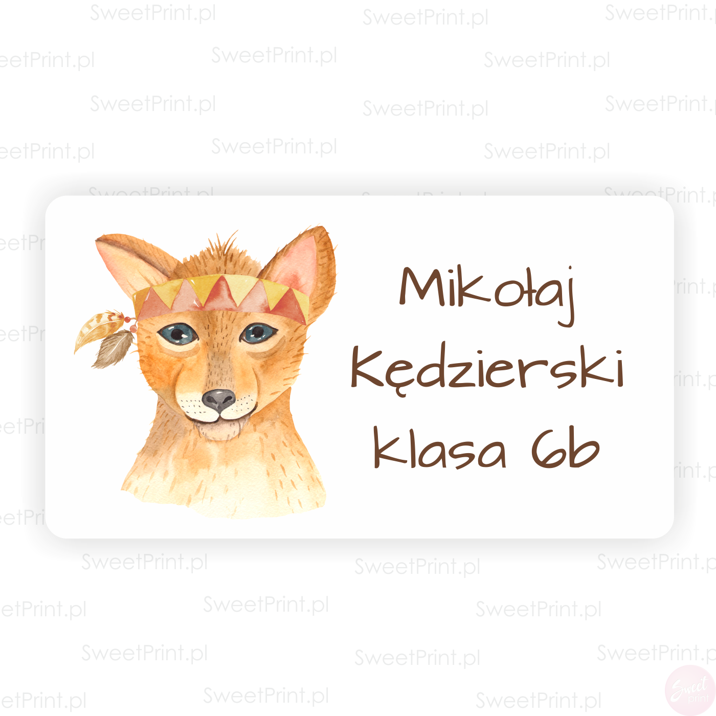 Obok obrazka na naklejce wydrukujemy imię i nazwisko, klasę lub inny dowolny tekst.