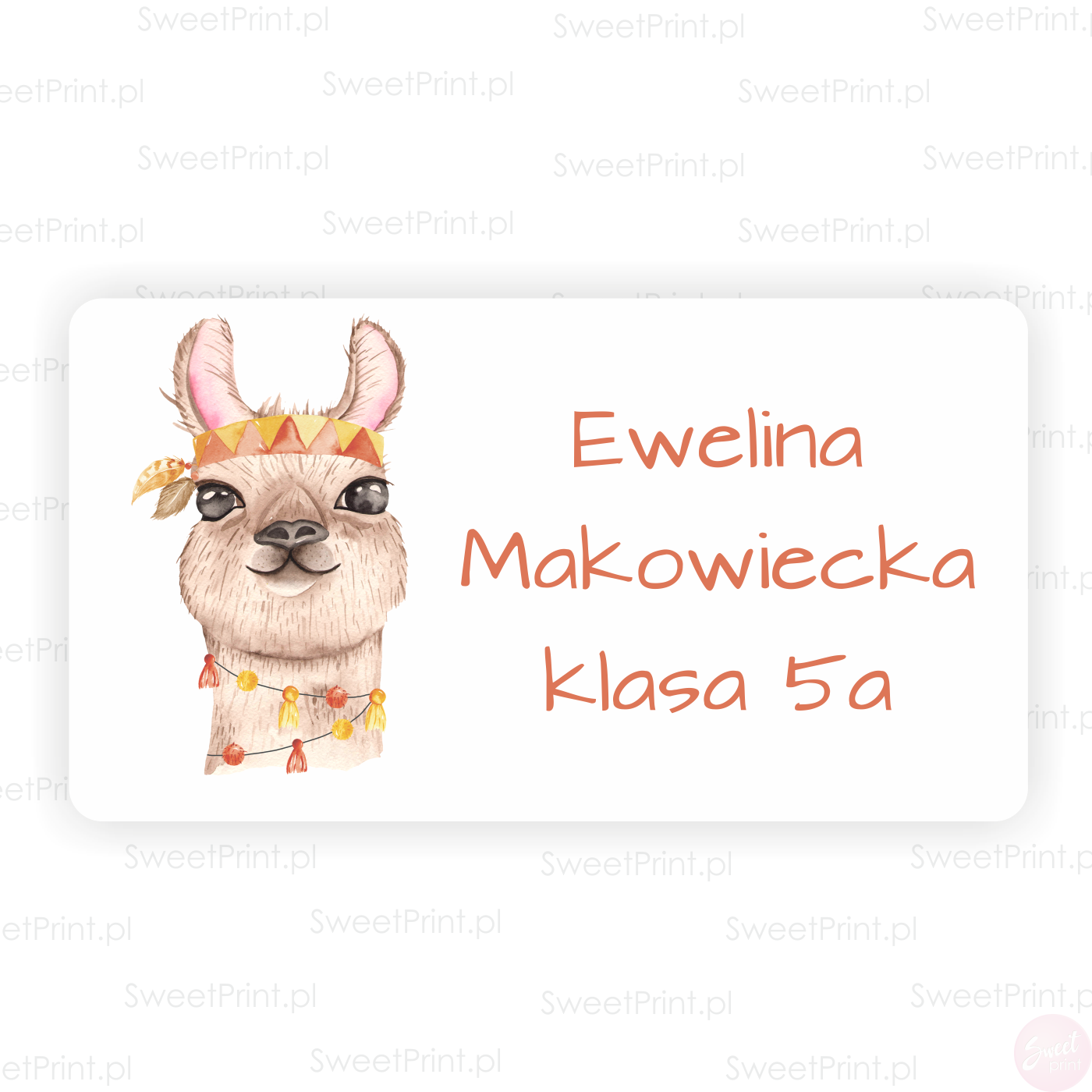 Obok obrazka na naklejce wydrukujemy imię i nazwisko, klasę lub inny dowolny tekst.