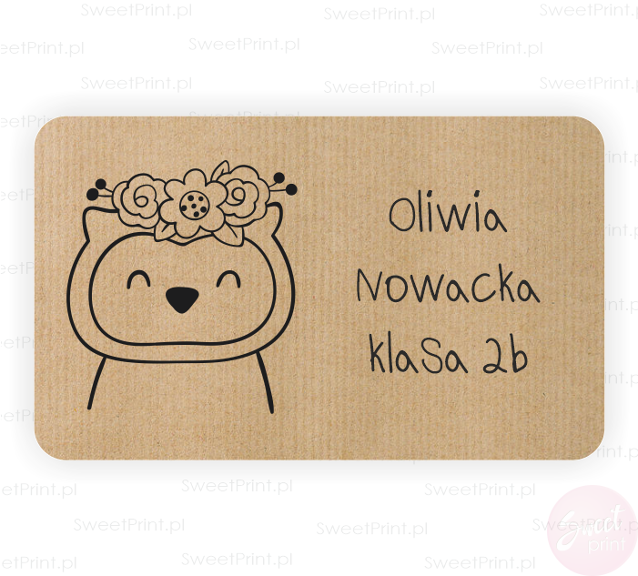 Obok obrazka na naklejce wydrukujemy imię i nazwisko, klasę lub inny dowolny tekst.