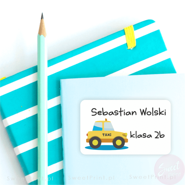 naklejki na zeszyt, na książkę, na książki, taksówka, taksówką, taksówki