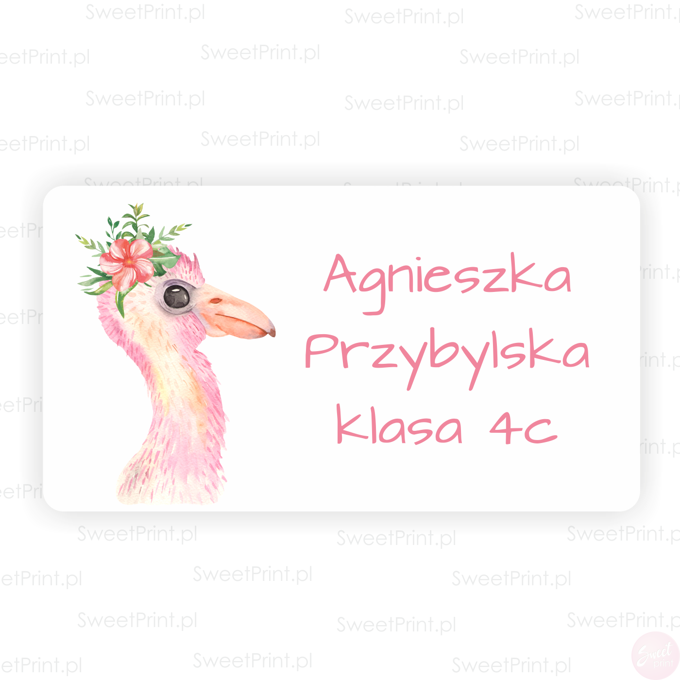 Obok obrazka na naklejce wydrukujemy imię i nazwisko, klasę lub inny dowolny tekst.