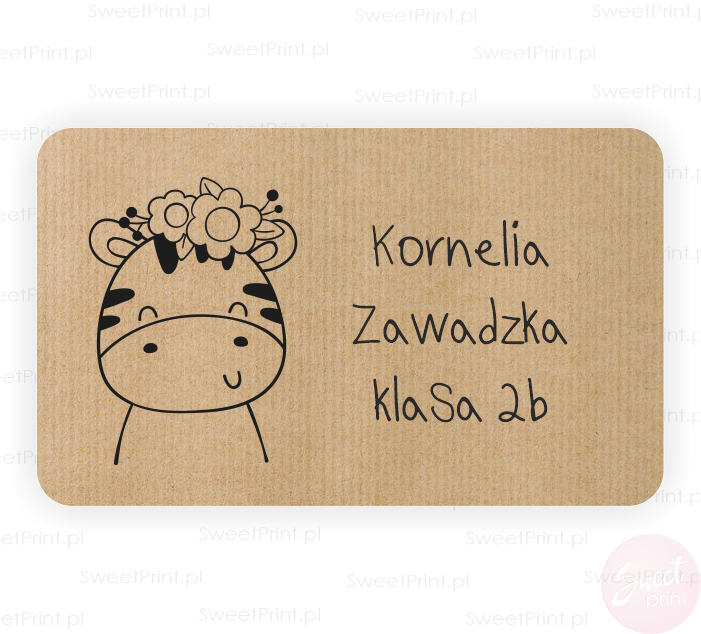 Obok obrazka na naklejce wydrukujemy imię i nazwisko, klasę lub inny dowolny tekst.